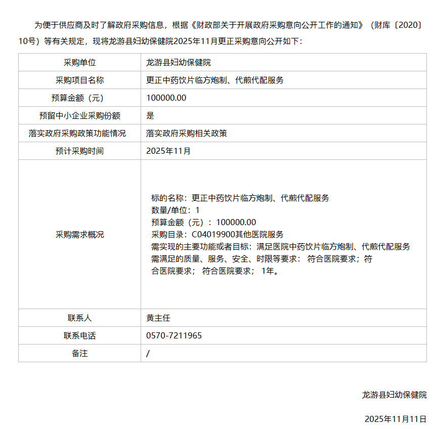 【衢州市龍游縣婦幼保健院】浙江省衢州市龍游縣婦幼保健院2025年11月更正政府采購(gòu)意向