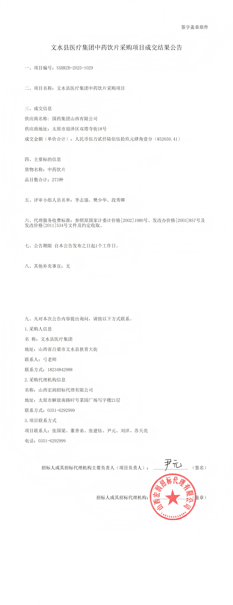 【呂梁市文水縣醫(yī)療集團(tuán)】山西省呂梁市文水縣醫(yī)療集團(tuán)中藥飲片采購(gòu)項(xiàng)目成交結(jié)果公告