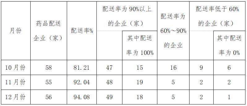 ??為進(jìn)一步壓實(shí)集采(掛網(wǎng))藥品生產(chǎn)企業(yè)供應(yīng)保障的主體責(zé)任,確保醫(yī)療機(jī)構(gòu)臨床使用需求,督促配送企業(yè)及時(shí)響應(yīng)醫(yī)療機(jī)構(gòu)采購訂單,提高配送時(shí)效,及時(shí)處理醫(yī)療機(jī)構(gòu)反映的供應(yīng)配送問題,對(duì)無法及時(shí)滿足醫(yī)療機(jī)構(gòu)采購需求、不按協(xié)議供應(yīng)的醫(yī)藥企業(yè),依據(jù)相關(guān)管理規(guī)定給予相應(yīng)信用評(píng)價(jià),現(xiàn)就關(guān)于全省第四季度藥品配送情況進(jìn)行通報(bào)如下。