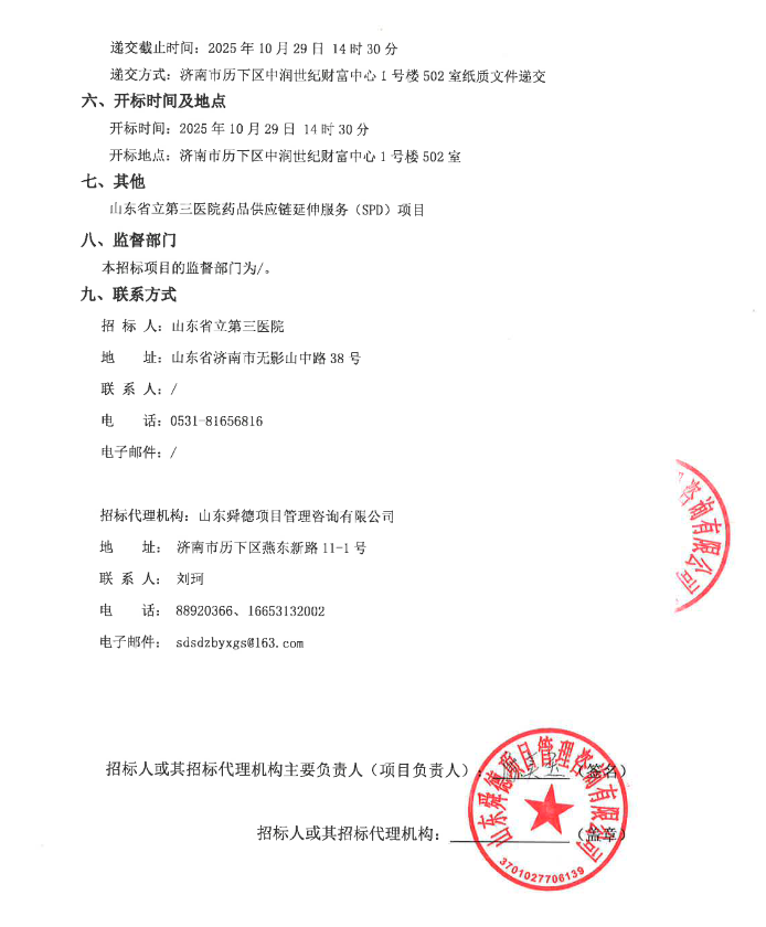 【山東省立第三醫(yī)院】山東省立第三醫(yī)院藥品供應鏈延伸服務(SPD)項目競爭性磋商公告