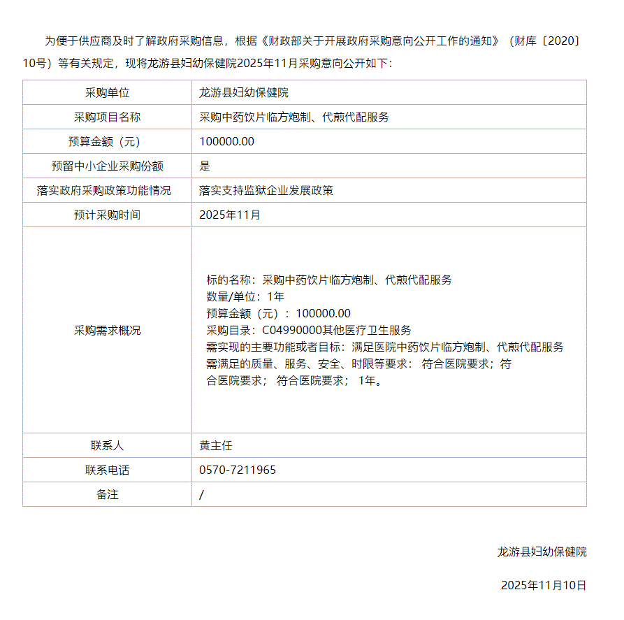 【衢州市龍游縣婦幼保健院】浙江省衢州市龍游縣婦幼保健院2025年11月政府采購意向