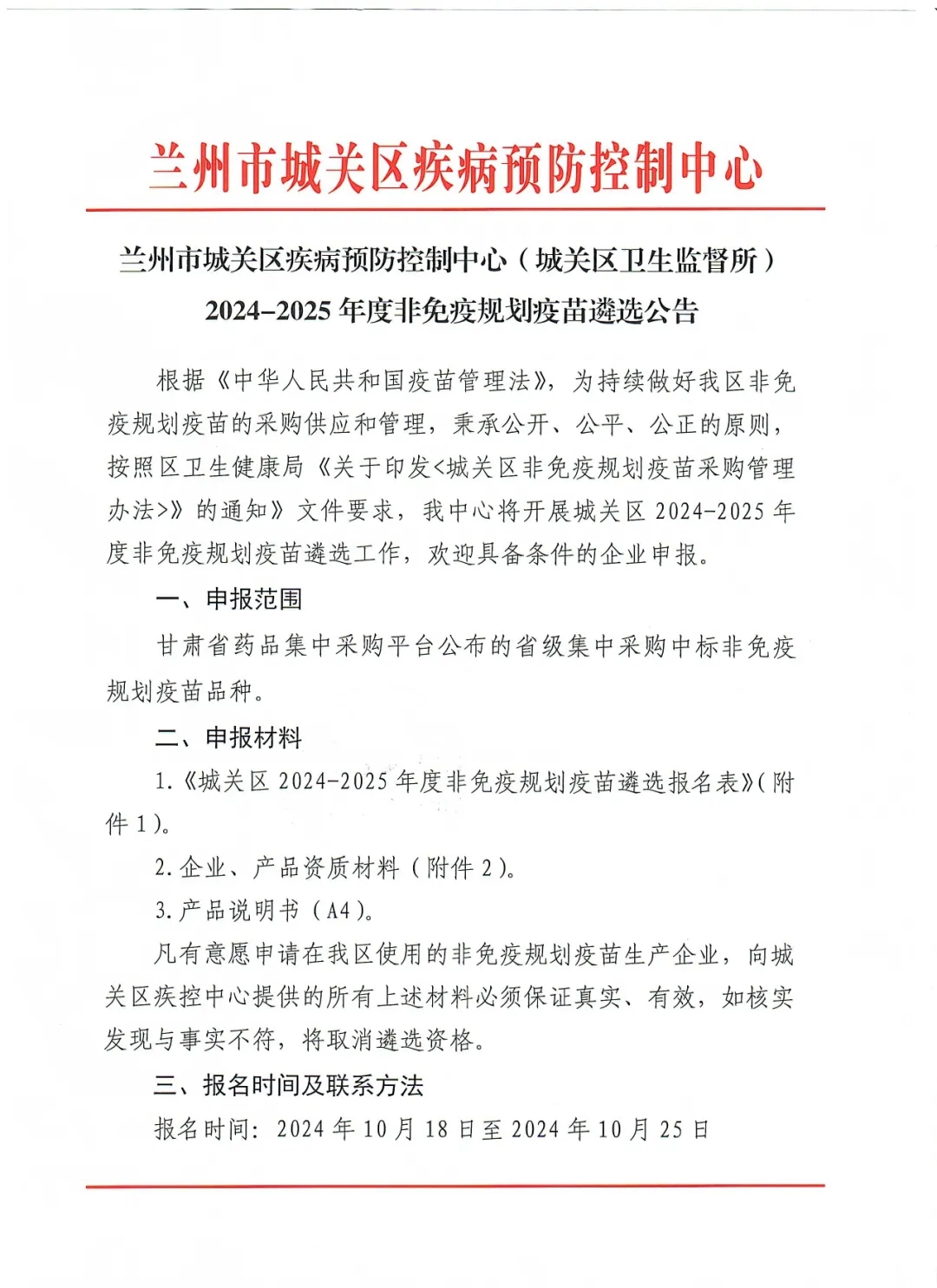 ??1、《城關區(qū)2024-2025年度非免疫規(guī)劃疫苗遴選報名表》(點擊申請材料下載)