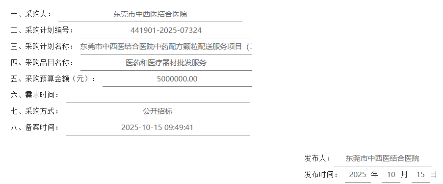 【東莞市中西醫(yī)結(jié)合醫(yī)院】廣東省東莞市中西醫(yī)結(jié)合醫(yī)院中藥配方顆粒配送服務(wù)項目(二次)