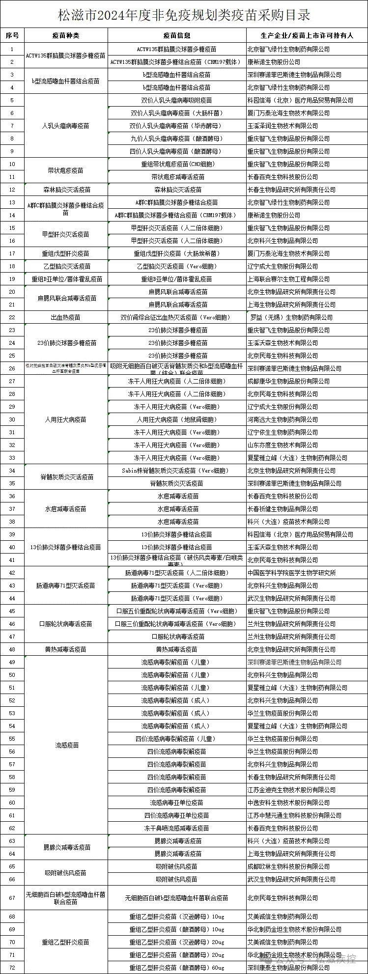 附:1.松滋市疾控中心非免疫規(guī)劃疫苗采購品種目錄(2024)