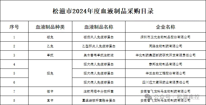 2.松滋市疾控中心血液制品采購目錄(2024)