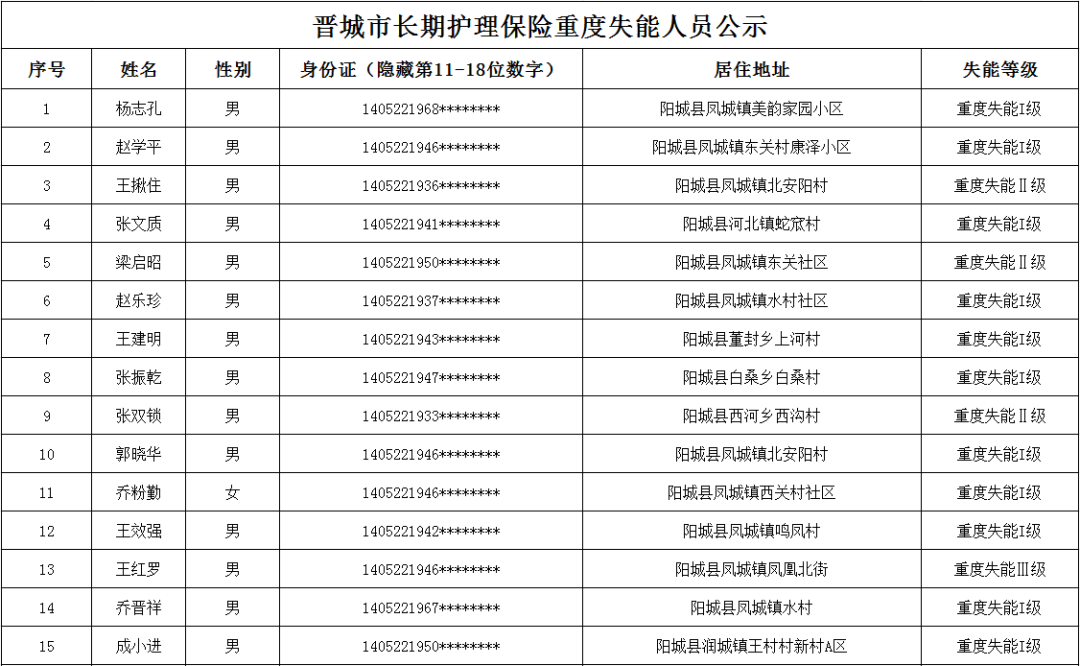 【晉城】《晉城市長(zhǎng)期護(hù)理保險(xiǎn)重度失能人員公示》2025年第1044號(hào)
