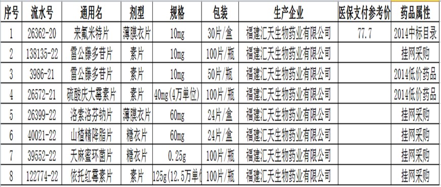 因福建省食藥監(jiān)局發(fā)回福建匯天生物藥業(yè)有限公司的片劑GMP證書(證書編號:FJ20140017),報(bào)省藥政聯(lián)席會議研究,經(jīng)該企業(yè)承諾:恢復(fù)片劑網(wǎng)采后對安徽省內(nèi)供貨為再次核發(fā)GMP證書后生產(chǎn)的藥品,并主動接受社會監(jiān)督?,F(xiàn)恢復(fù)該企業(yè)所有片劑在我省醫(yī)藥集中采購平臺的網(wǎng)上采購資格,具體涉及品規(guī)如下。