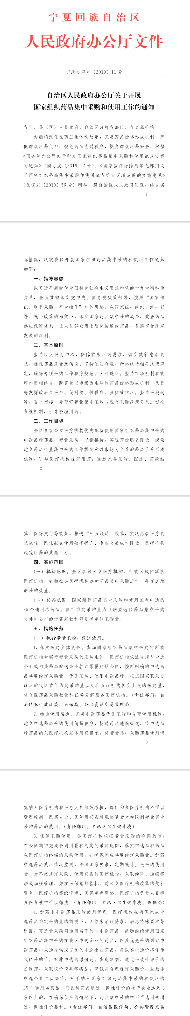 【寧夏回族自治區(qū)】寧夏回族自治區(qū)人民政府辦公廳關(guān)于開展國家組織藥品集中采購和使用工作的通知