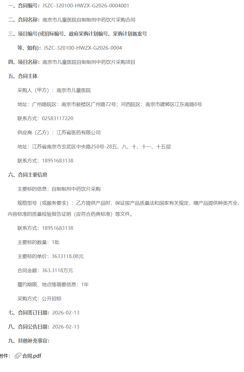 【南京市兒童醫(yī)院】江蘇省南京市兒童醫(yī)院自制制劑中藥飲片采購(gòu)合同