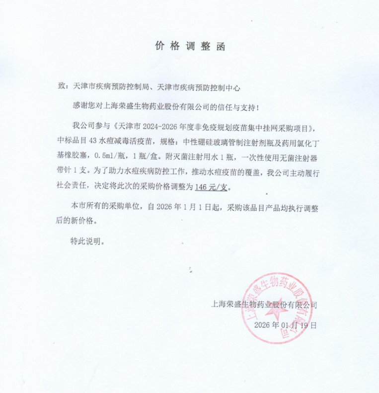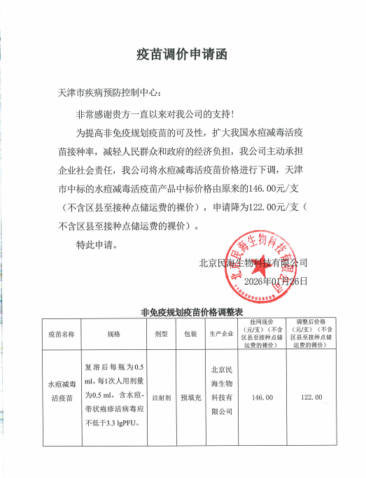 【天津】天津市2024-2026年度非免疫規(guī)劃疫苗集中掛網采購項目部分疫苗價格調整的公告