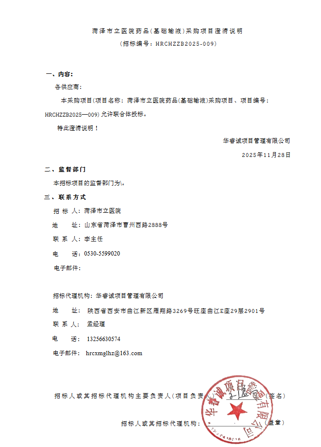 【菏澤市立醫(yī)院】山東省菏澤市立醫(yī)院藥品(基礎(chǔ)輸液)采購項目澄清說明
