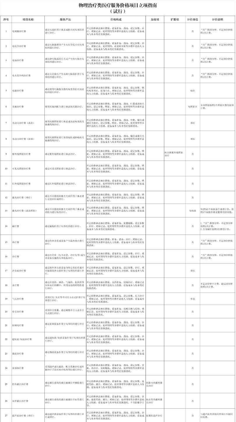 【國家】國家醫(yī)保局印發(fā)《物理治療類醫(yī)療服務(wù)價(jià)格項(xiàng)目立項(xiàng)指南(試行)》